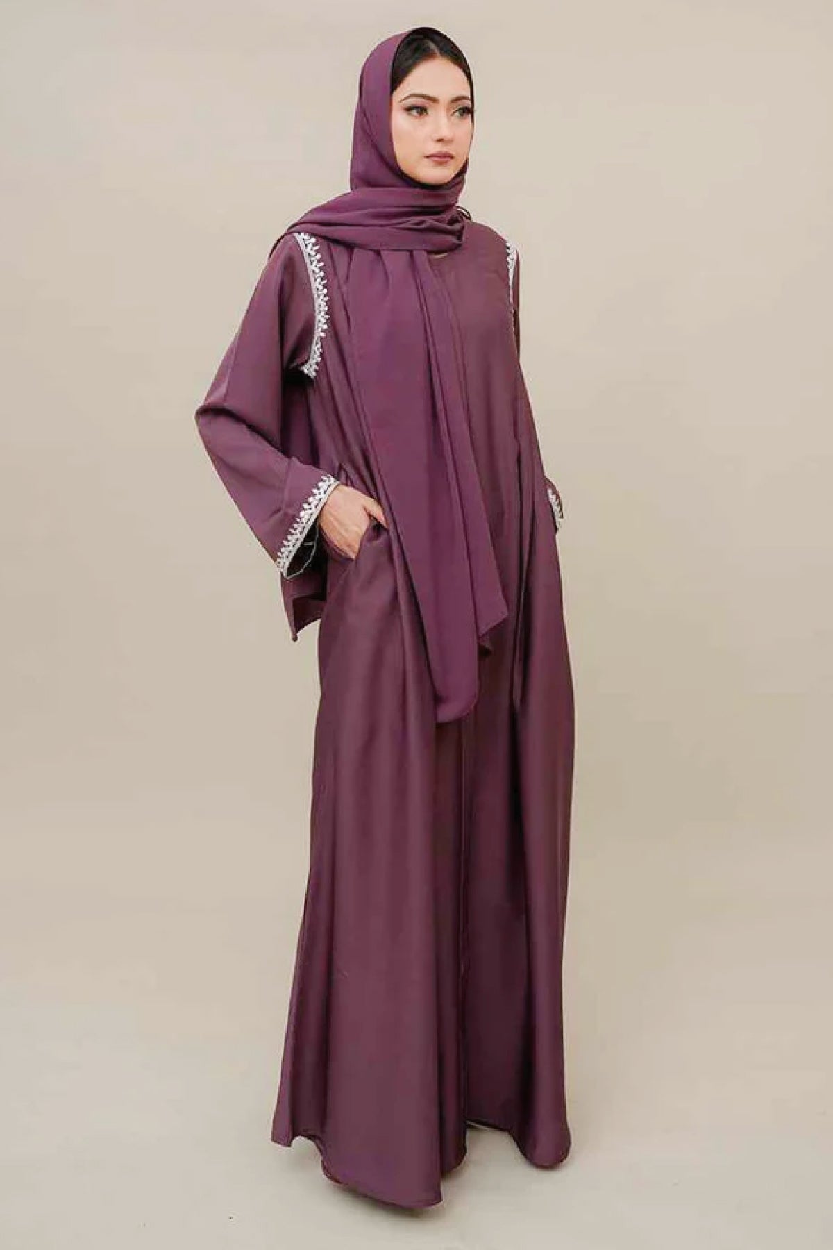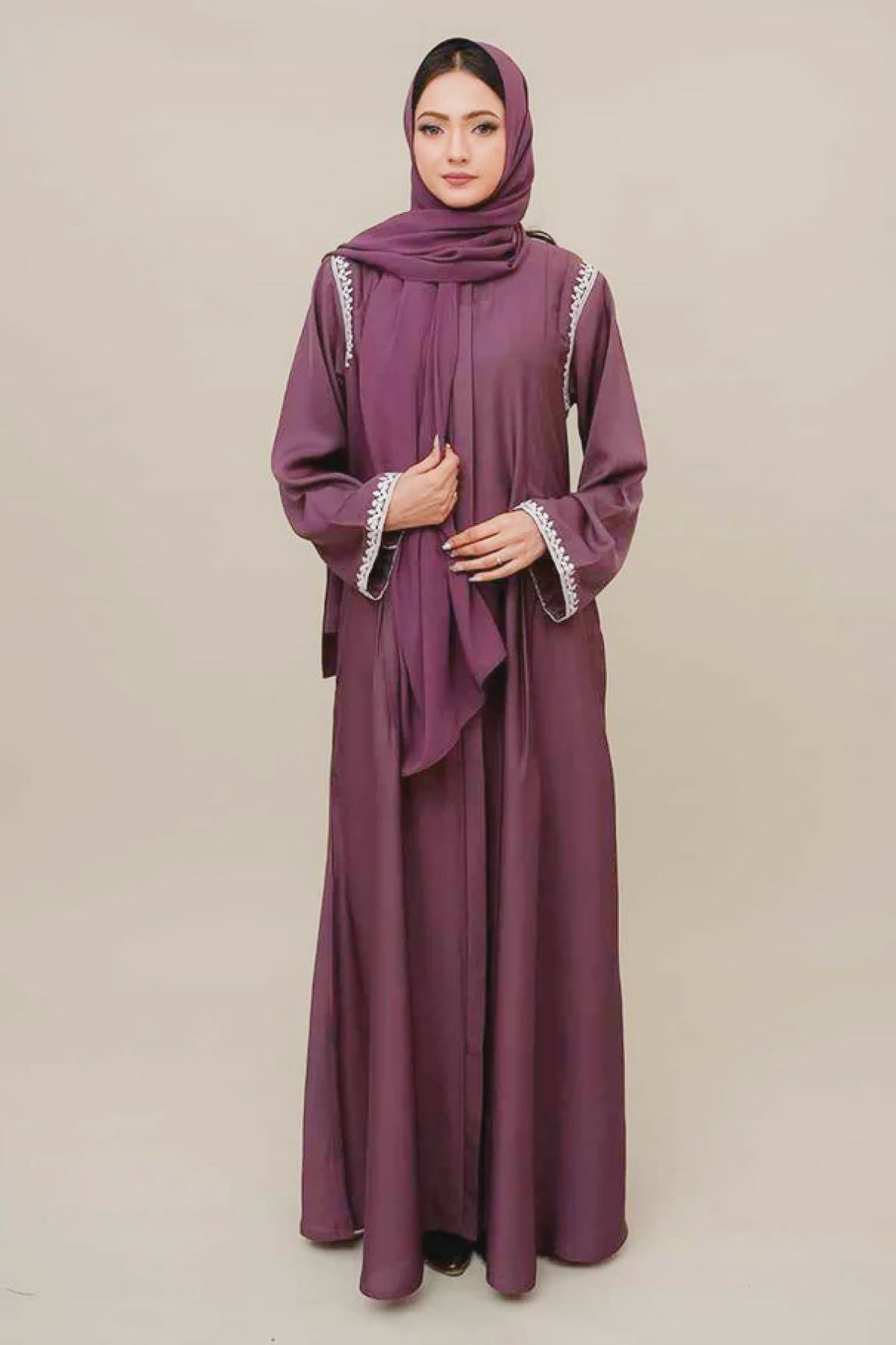 إلينا - عباية نيدا بنفسجية مع تفاصيل مطرزة وحجاب.