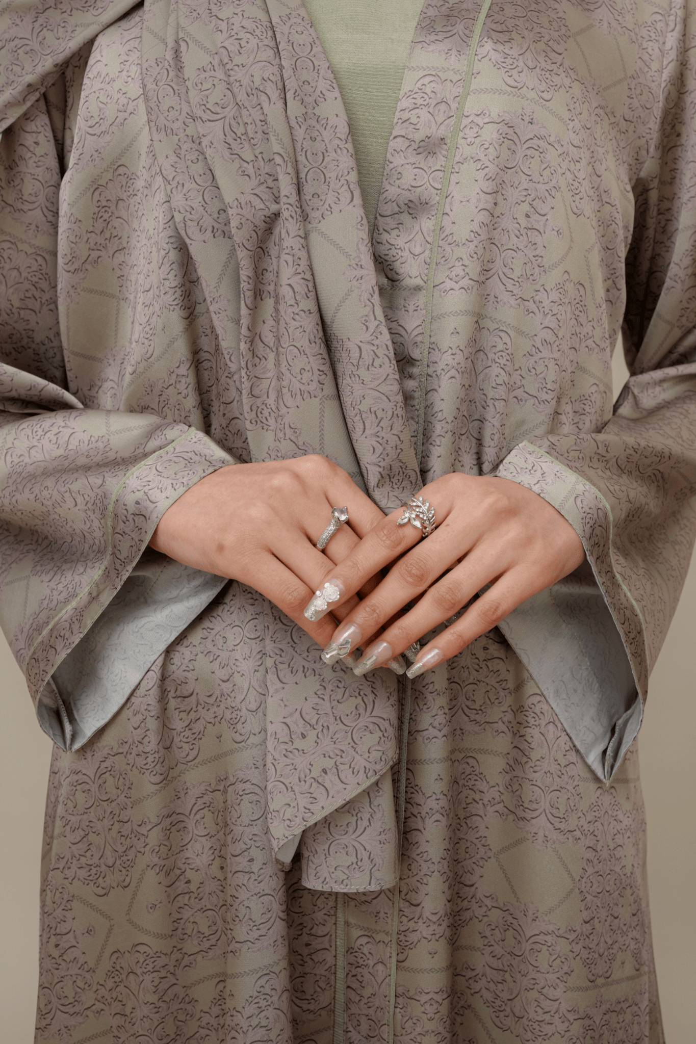 كيمونو (خارجي) - حرير مطبوع (فستق ووردي)
