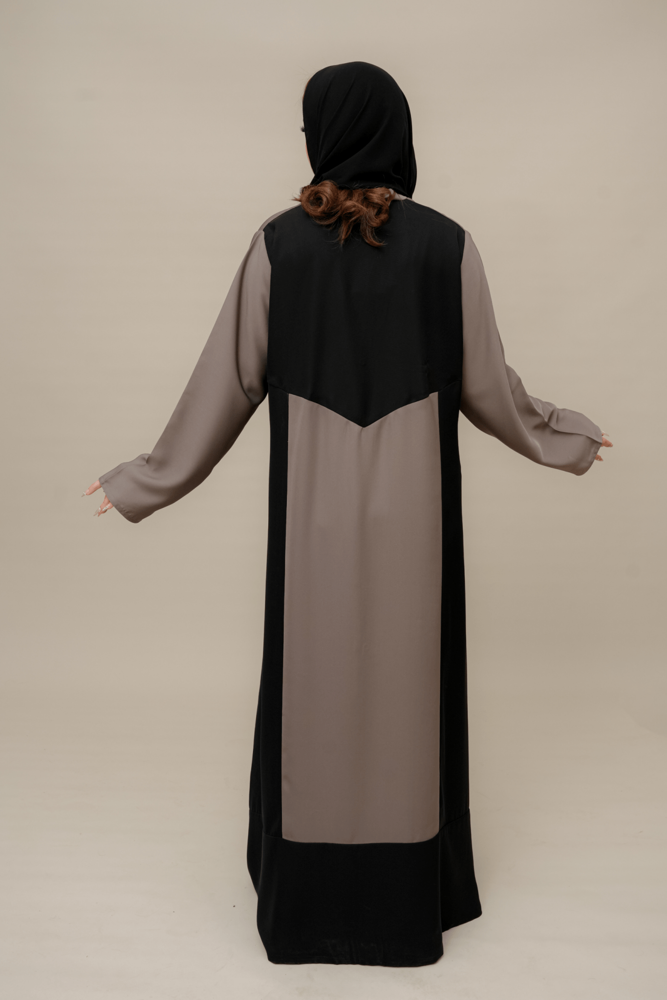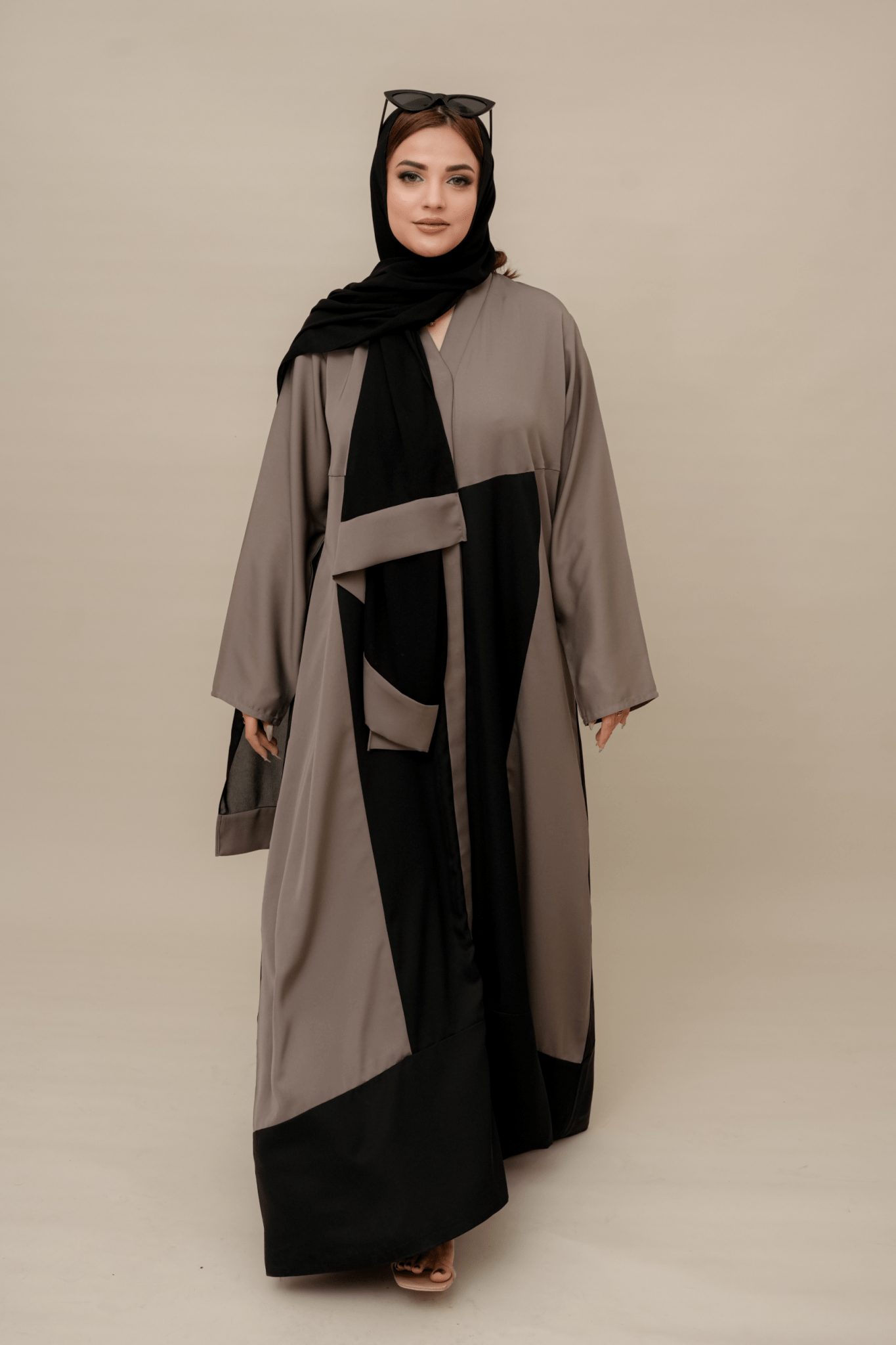Amaya – Abaya Nida bicolore noire et grise avec hijab assorti