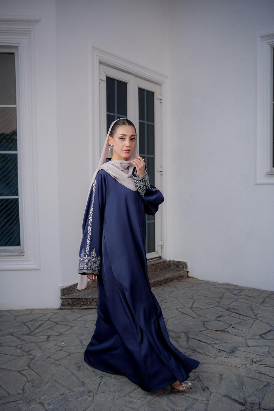 Istanbul Royal Navy Front Open Embroidered Abaya – Nida Fabric