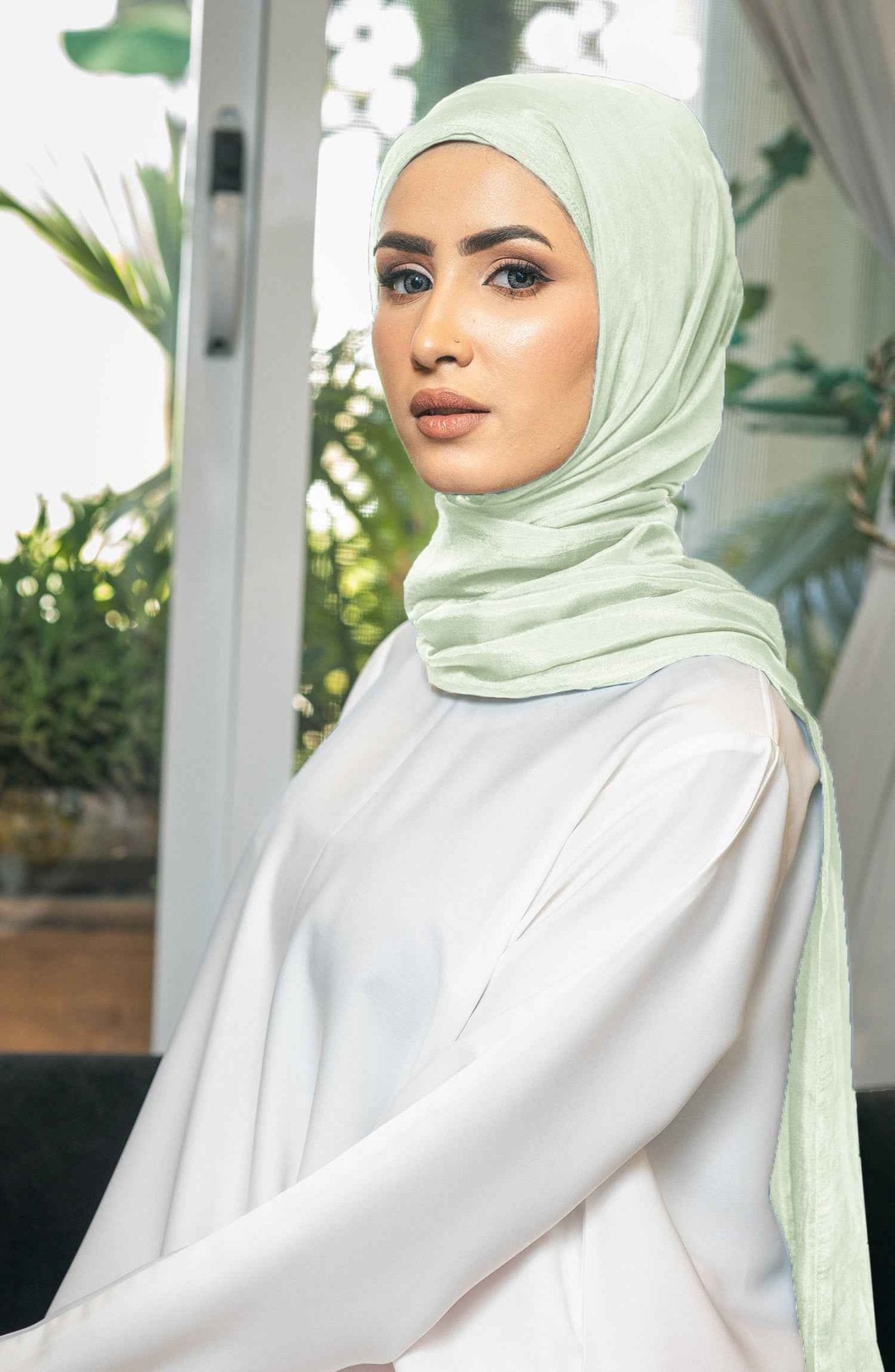 Elevate your look with the Pistachio Silk Hijab, crafted from luxuriously smooth silk for a soft, lightweight drape. Its fresh pistachio hue adds a touch of elegance, making it perfect for both casual wear and special occasions.