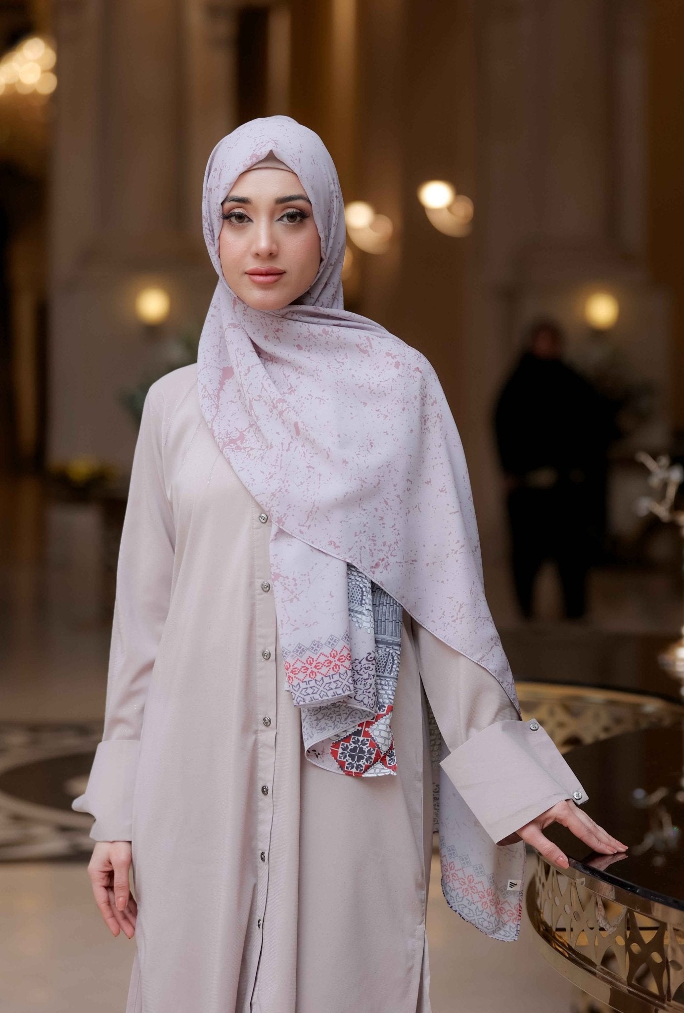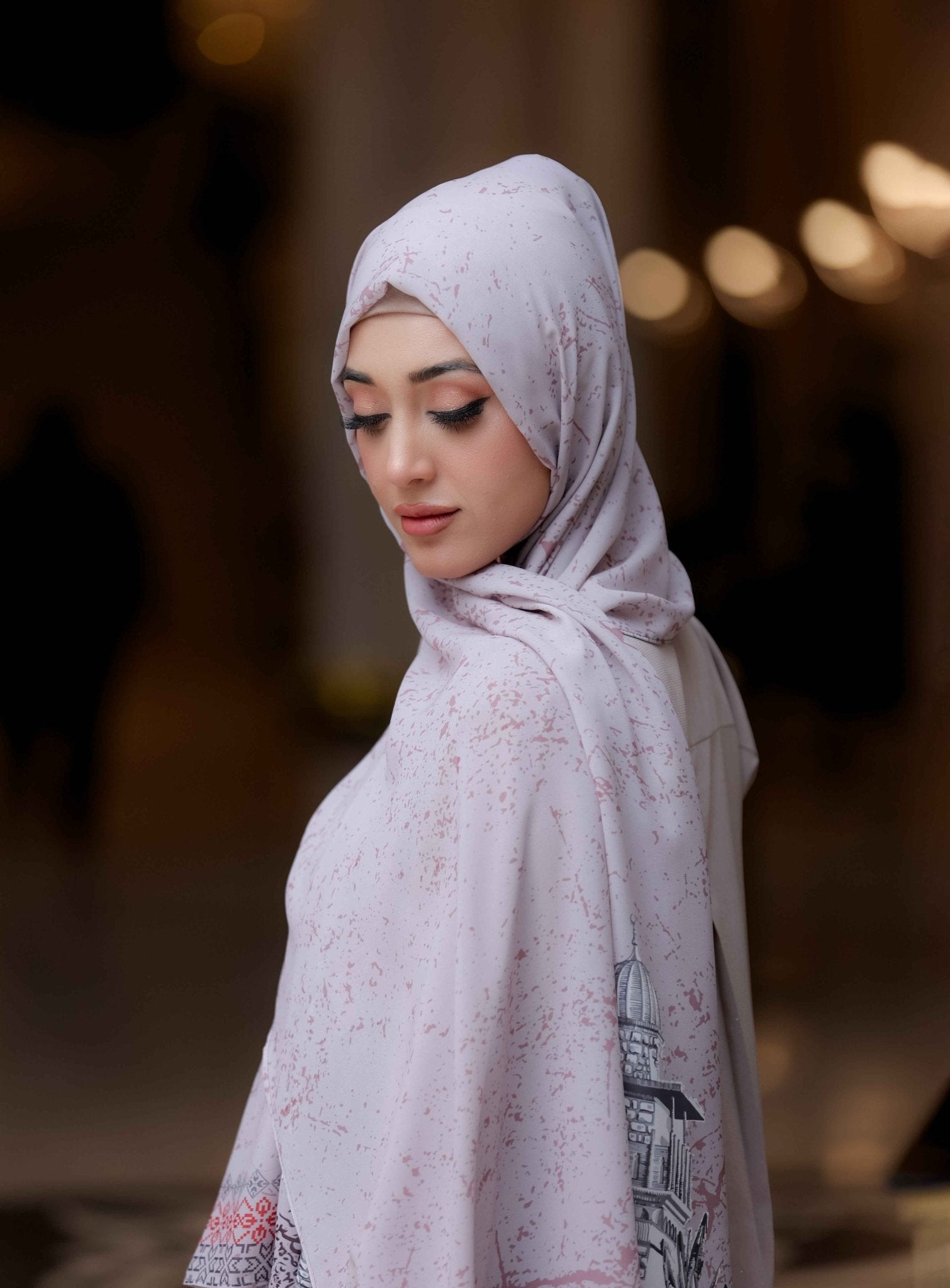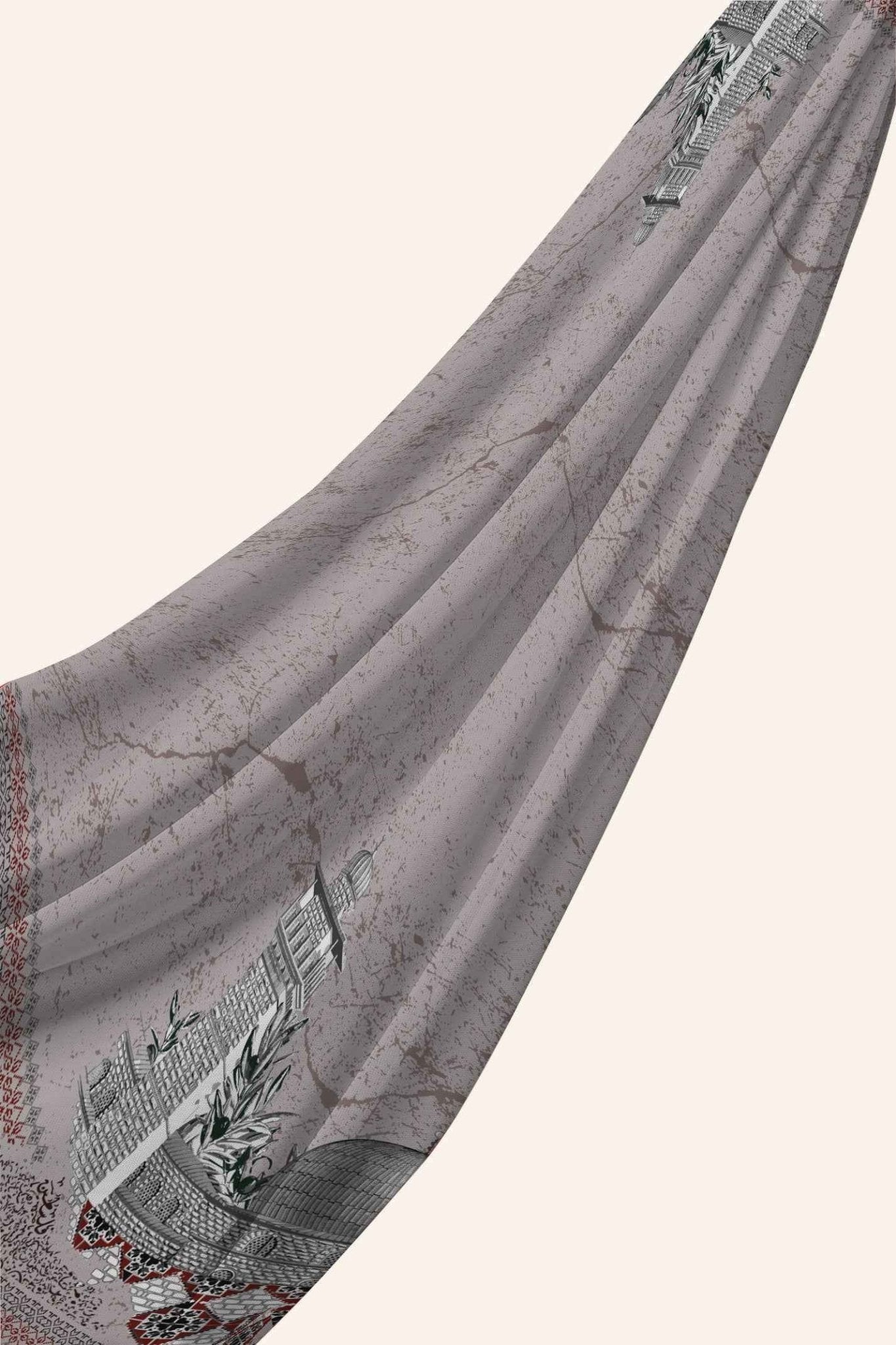Elevate your modest style with the Al Aqsa Grey chiffon hijab, featuring luxe chiffon and keffiyeh-inspired Al Aqsa motifs. Lightweight and breathable, it drapes beautifully. Ideal for daily wear, cultural gatherings, or formal events.
