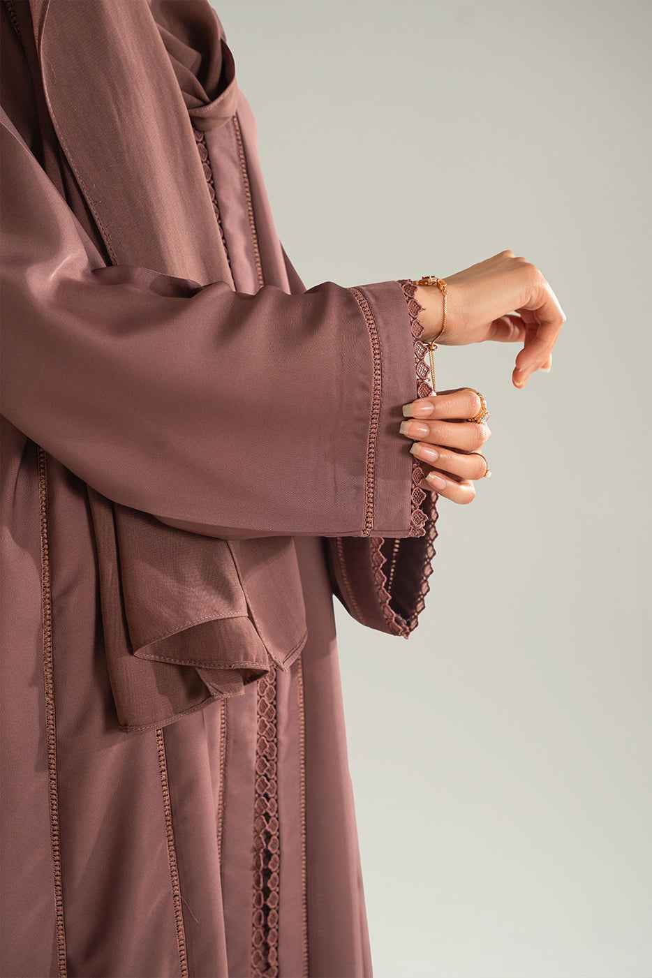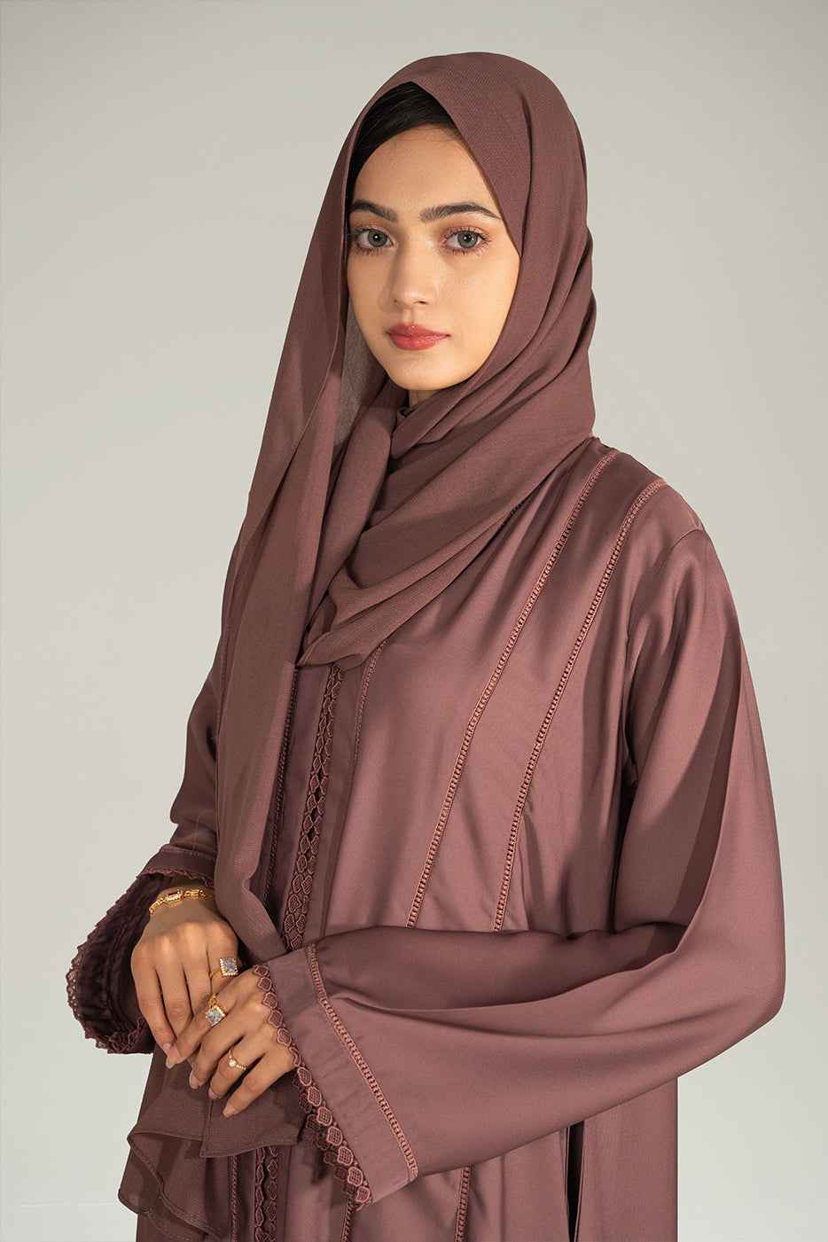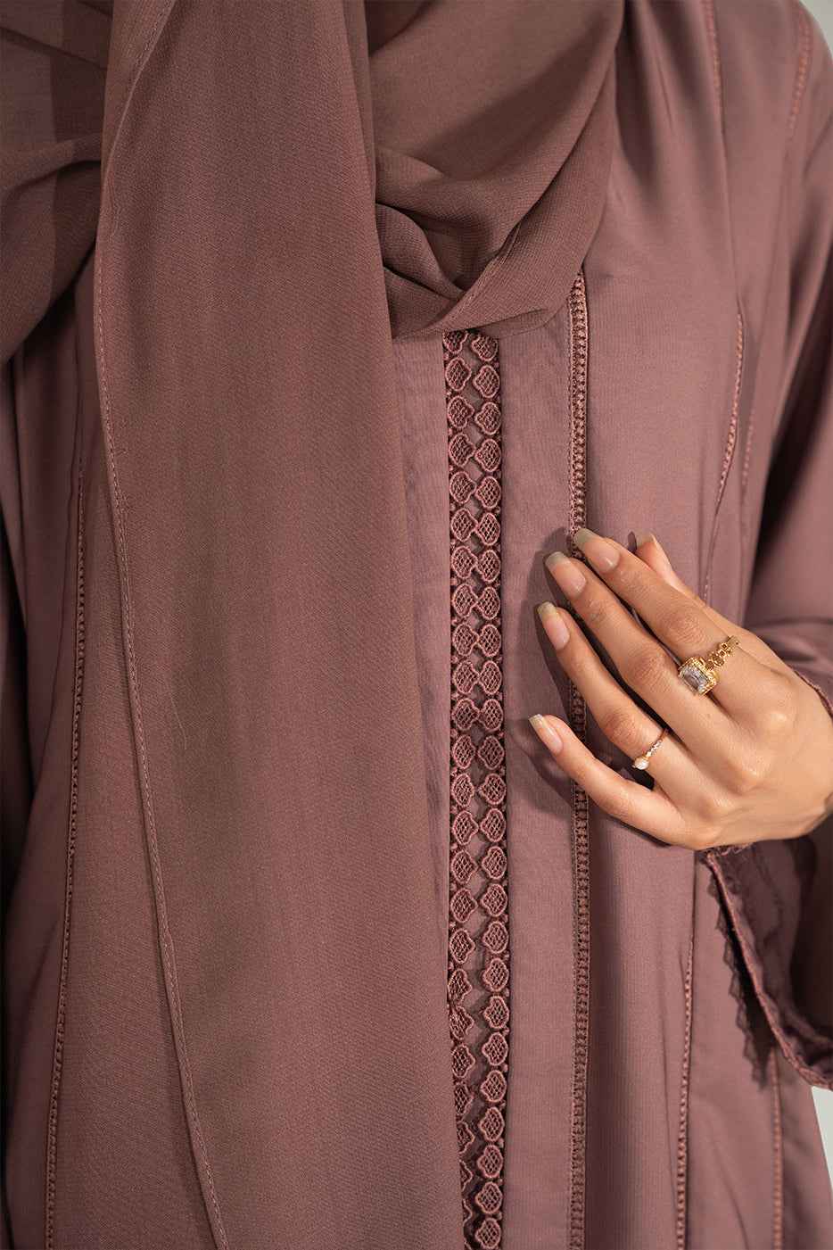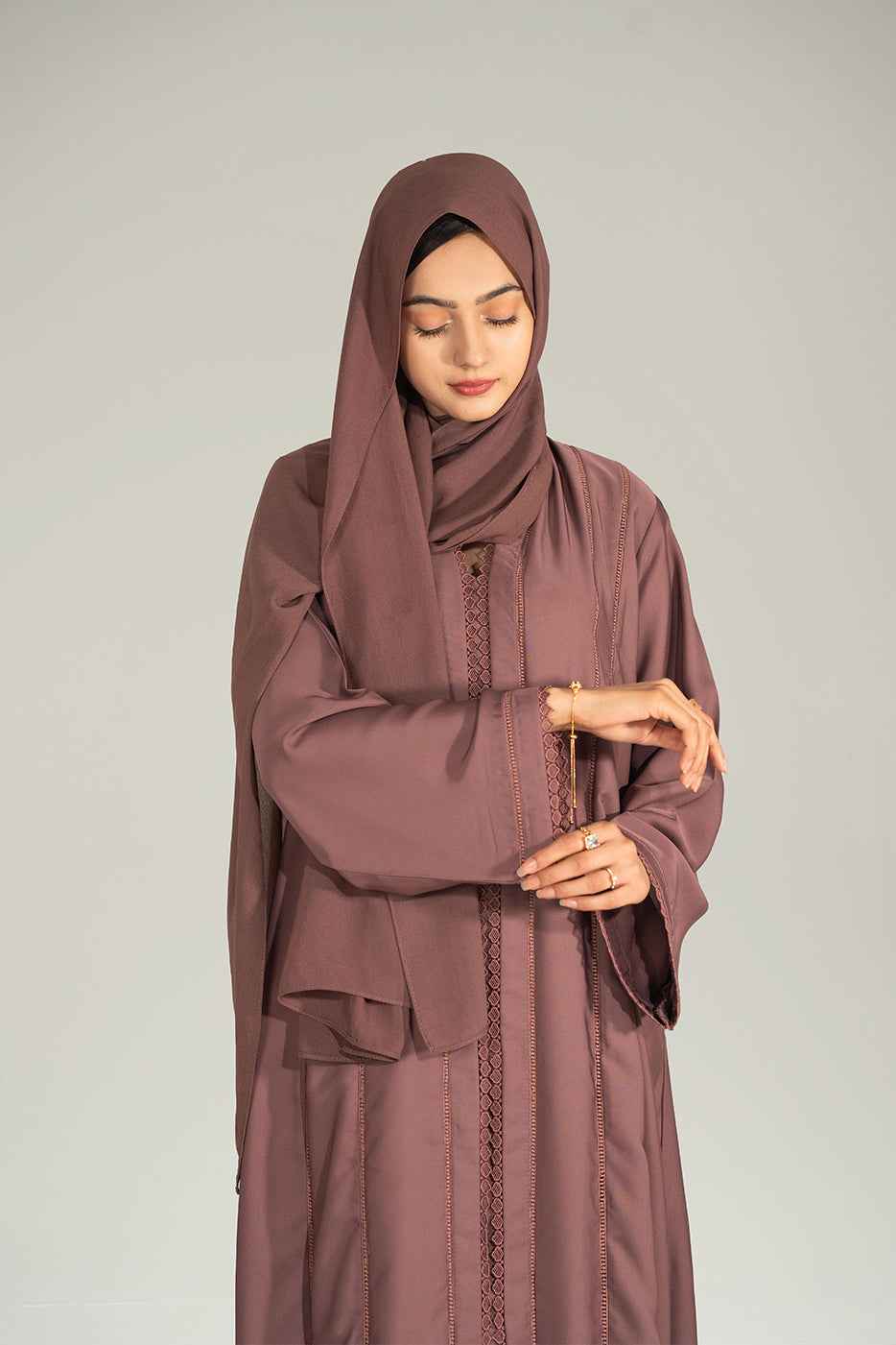 Crafted in a warm tawny shade, this front open abaya is designed with elegant embroidered panels and a modest flowy cut. Made with premium fabric, it blends everyday comfort with timeless sophistication.